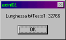 Difficoltà: Le caselle di testo di Visual Basic possono contenere qualsiasi stringa di testo ma, negli ambienti Windows 9x esiste un limite massimo di caratteri che possono contenere. Nei sistemi Windows NT questo limite è dettato da due fattori: memoria libera disponibile e tipologia di utilizzo dei dati. Dimostreremo in questo articolo il numero massimo di caratteri che una Textbox è in grado di contenere. La guida di VB si esprime con queste parole: "L'impostazione di Text per un controllo TextBox può contenere al massimo 2048 caratteri, a meno che la proprietà MultiLine non sia True. In quest'ultimo caso il limite massimo è di circa 32K". Tuttavia la realtà non è proprio così semplice.